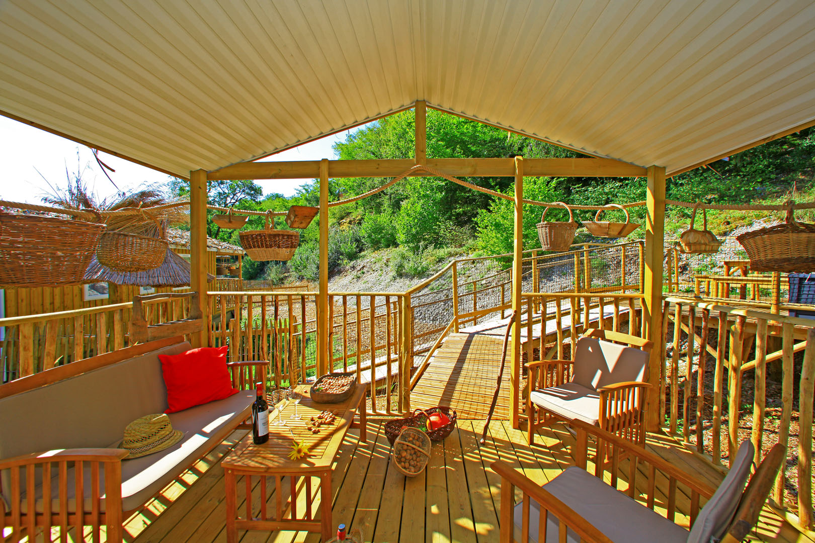 Le Domaine Périgord Vacances propose également des mobile-homes pour que chaque famille, selon son budget, puisse trouver son bonheur. Ces hébergements de 32m², pour 5 personnes, sont tous aménagés de façon identique avec une chambre double et une chambre triple, une salle d’eau, un wc indépendant et une cuisine/séjour. À l’extérieur, des terrasses spacieuses ont été construites et couvertes sur 9m2 afin de prendre vos repas à l’abri des intempéries ou du soleil, de faire votre sieste bercés par le chant des oiseaux, de vous relaxer sur votre transat.